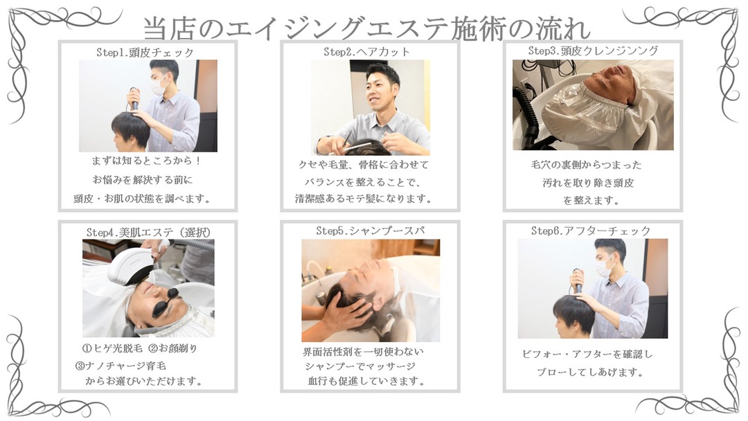 現在肌荒れや薄毛に悩んでいる方も、将来悩まないように早めにケアしておきたい方も、幅広い世代の男性にご利用いただけます。